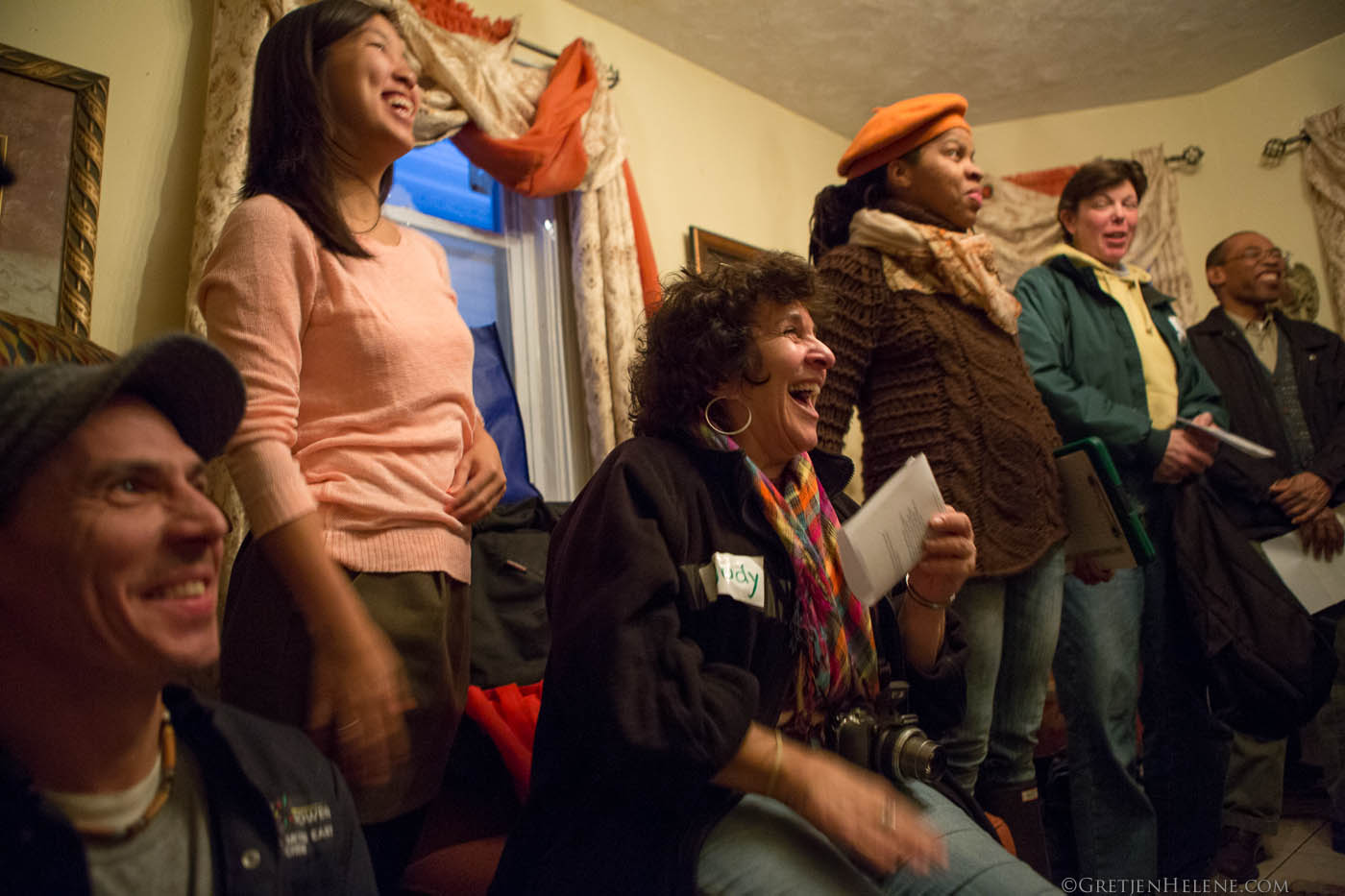 During supper, people had the opportunity to hear presentations on job openings in the weatherization industry. Jubeth Nuñez representing Renew Boston and Next Step Living, Eunice Yu from Mass Energy, Mela Bush from Co-op Power, and Stephan MacPhee from