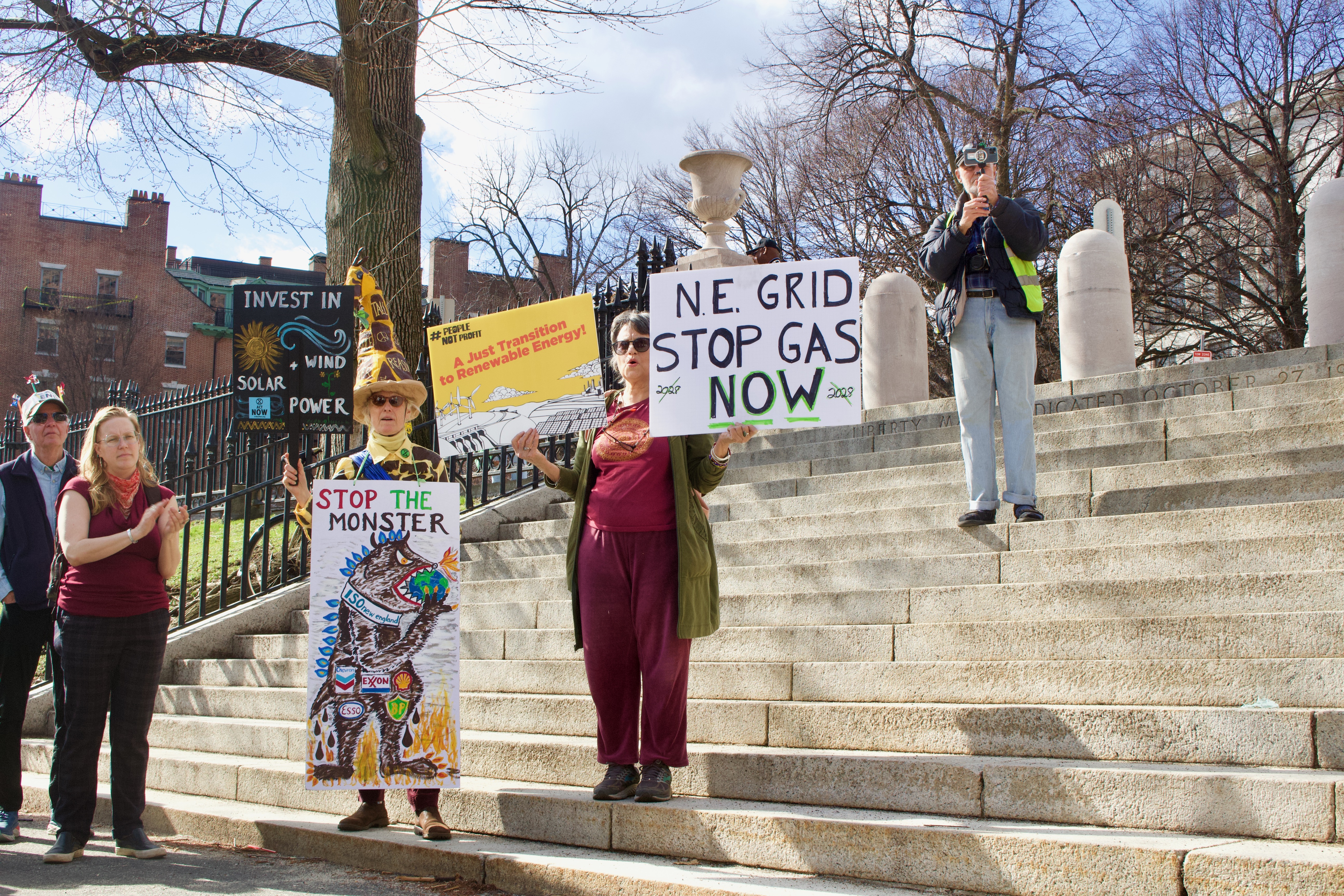Activists also called on Baker and his administration to mitigate further climate change by pressuring ISO-New England, which manages New England’s power grid, to stop obstructing the transition to clean energy use.