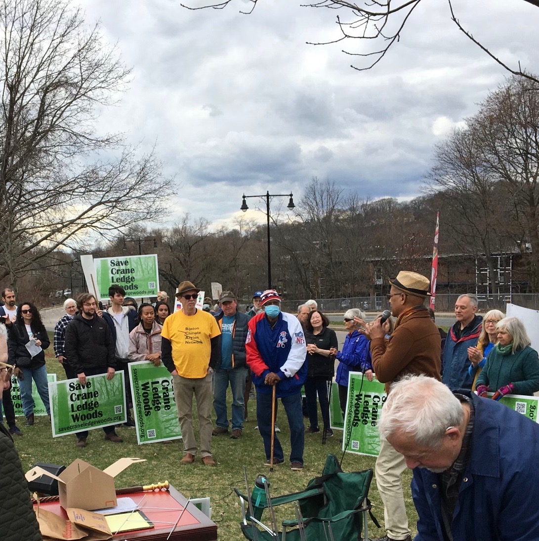 The day after the Climate Strike, March 26, over 100 members and allies of the coalition to Save Crane Ledge Woods called for the city to purchase the 24-acre urban woodland and tree canopy bordered by Hyde Park, Mattapan and Roslindale. The spirited rally drew support from scores of honking cars along American Legion Highway. Full conservation of Crane Ledge Woods is a once-in-a- generation’s opportunity to preserve rich urban tree canopy and invaluable carbon sink for inland neighborhoods. Preserving urban trees is a critical part of mitigating climate change while promoting climate resilience and environmental justice. Contact Mayor Wu and your city councilor by email, telephone, and US mail. To join the fight, sign the CLWC petition now.